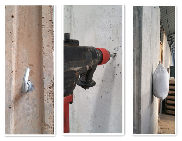 ★該墻板在任意部位打釘或上膨脹螺栓都能緊固而且可吊重物,如空調等,單點吊掛力在50Kg以上;