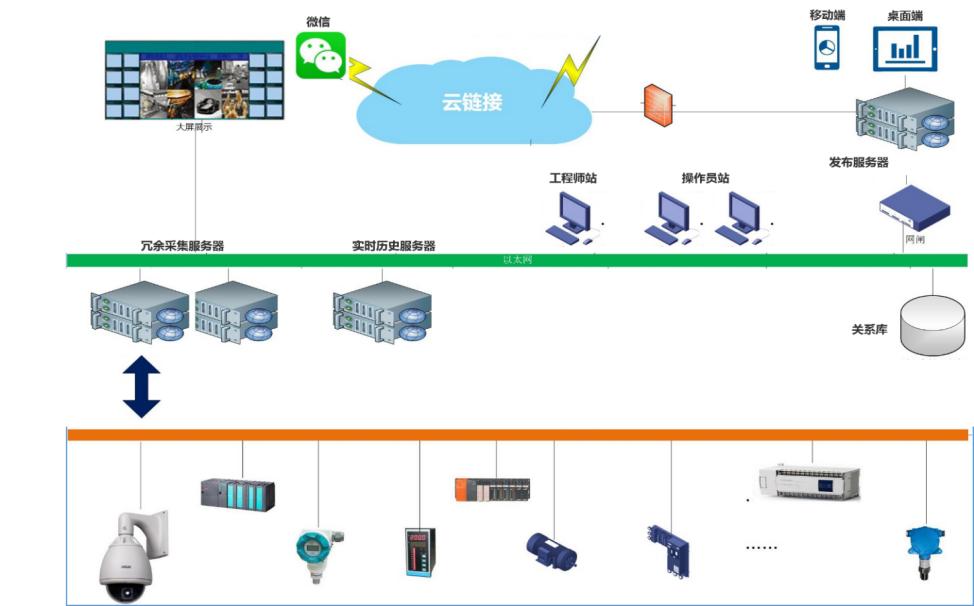 綜合監(jiān)控層:部署數(shù)據(jù)庫(kù)軟件和SCADA軟件,把傳輸?shù)街行亩说臄?shù)據(jù)通過(guò)計(jì)算和存儲(chǔ)為生產(chǎn)安全提供有力的數(shù)據(jù)支撐,通過(guò)實(shí)時(shí)/歷史數(shù)據(jù)可以對(duì)各子系統(tǒng)的安全生產(chǎn)狀況進(jìn)行綜合性動(dòng)態(tài)分析,為科學(xué)決策提供依據(jù)。管控一體化平臺(tái)的建設(shè),將有助于各級(jí)管理人員、技術(shù)人員及時(shí)準(zhǔn)確了解現(xiàn)場(chǎng)設(shè)備生產(chǎn)運(yùn)行所需的各類信息,可通過(guò)調(diào)度中心的大屏、各個(gè)子站的運(yùn)行客戶端、遠(yuǎn)程用戶可通過(guò)WEB發(fā)布方式進(jìn)行遠(yuǎn)程瀏覽訪問(wèn)現(xiàn)場(chǎng)設(shè)備運(yùn)行數(shù)據(jù)信息。