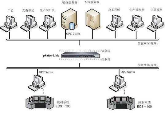 該廠為了從根本上解決DCS控制網絡的安全可靠運行,在該PIMS系統中選用了pSafetyLink作為DCS控制網絡的安全防護裝置。