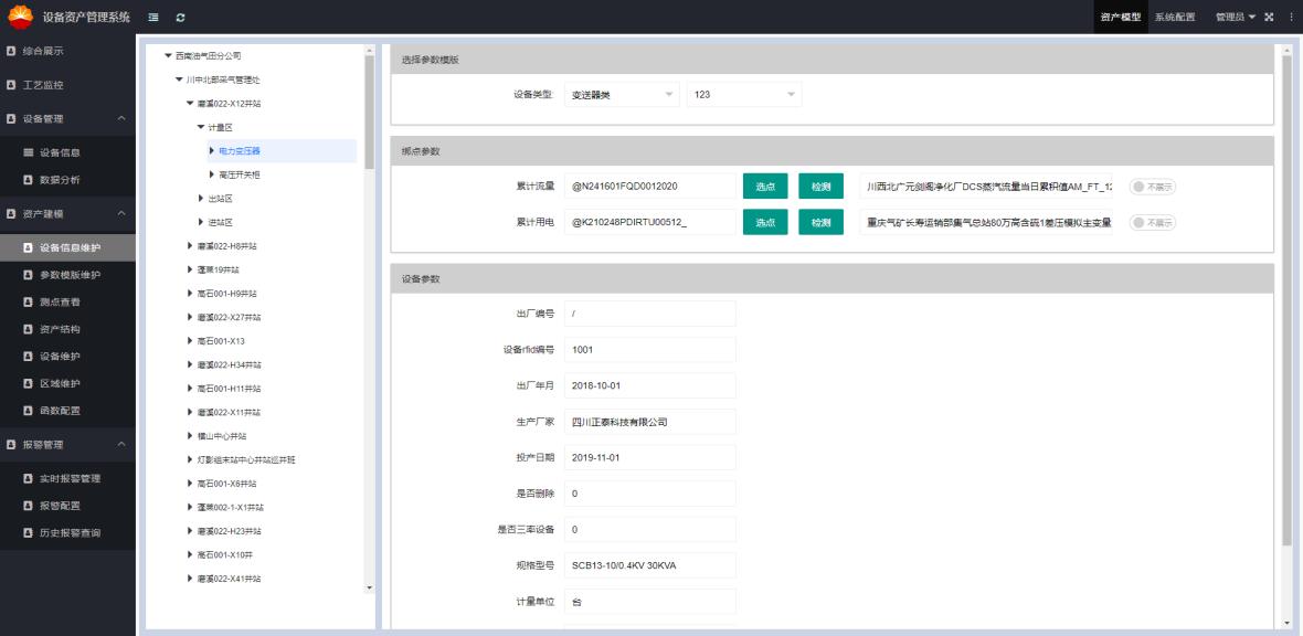 資產建模內的主要功能就是對設備進行維護,包括設備信息維護,參數模板維護,資產結構維護,設備維護,區域維護,這些維護的功能最后呈現就會在設備管理中。