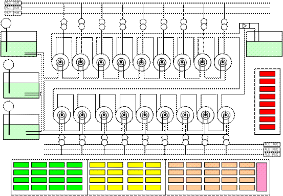 主監控顯示區以泵站電氣線路連接圖為背景標示各參量數據,點擊各動態組件可查看動態細節圖,示意圖如下: