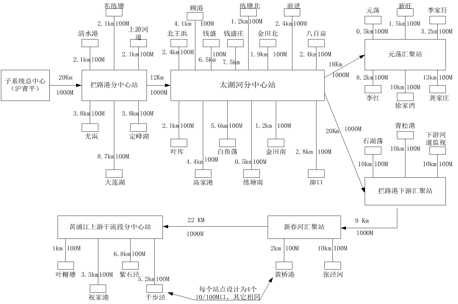 整個(gè)子系統(tǒng)工程建設(shè)有1個(gè)子系統(tǒng)控制中心、3個(gè)分中心、30個(gè)監(jiān)測(cè)站點(diǎn)和6 個(gè)站點(diǎn)的系統(tǒng)接入。工程建立的水閘遠(yuǎn)程監(jiān)控系統(tǒng),對(duì)太浦河段、攔路港段、黃浦江上游河道的水情和工情進(jìn)行實(shí)時(shí)自動(dòng)監(jiān)測(cè)、監(jiān)控,實(shí)時(shí)采集水情數(shù)據(jù),通過光纜傳輸,在決策系統(tǒng)支持下,作出優(yōu)化調(diào)度與調(diào)控水閘運(yùn)行。確保上海市城市防洪安全和充分發(fā)揮水情資源的合理利用。