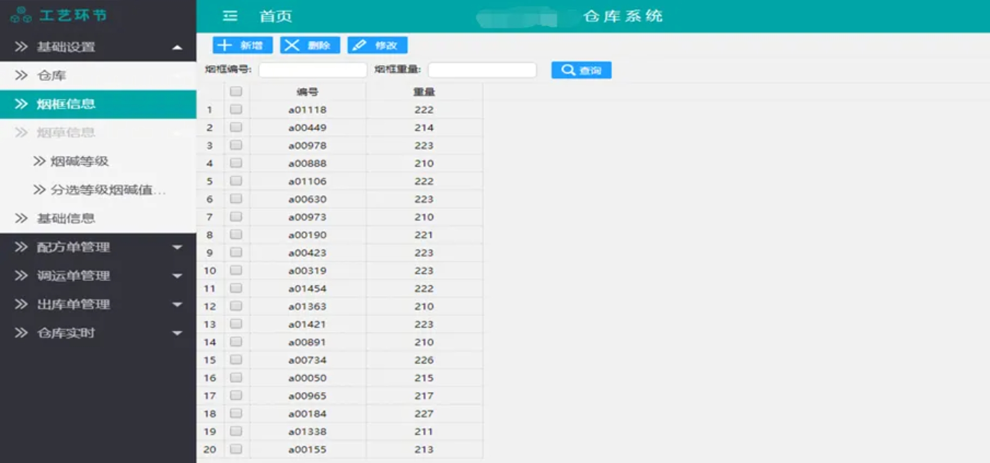 主要包含倉(cāng)庫(kù)、煙框、煙草等信息的維護(hù)。
