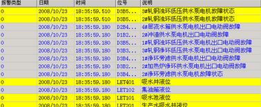 模擬量數(shù)據(jù)在水處理監(jiān)控系統(tǒng)主監(jiān)控畫面中都已顯示出來,包含文字說明和單位,其中液位還以圖形化百分比填充方式顯示液位的變化,非常直觀,當(dāng)該模擬量如液位發(fā)生超限(低于低限和高于高限時(shí))時(shí)將報(bào)警,以畫面閃爍和聲音方式提示控制室值班人員。