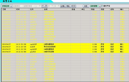 ◆ 系統(tǒng)實現(xiàn)了遠程設(shè)備管理部署功能,實時監(jiān)測到遠程設(shè)備的啟停、工作狀態(tài),遠程設(shè)備的報警信息可迅速的反饋到中心控制室。報警分為四種方式:斷線報警(包括設(shè)備故障報警)、超標(biāo)報警、開關(guān)設(shè)備報警和異常情況報警。可以靈活設(shè)定報警條件,并和現(xiàn)場人員的手機、短信綁定,在滿足報警條件時,自動發(fā)送報警信息。