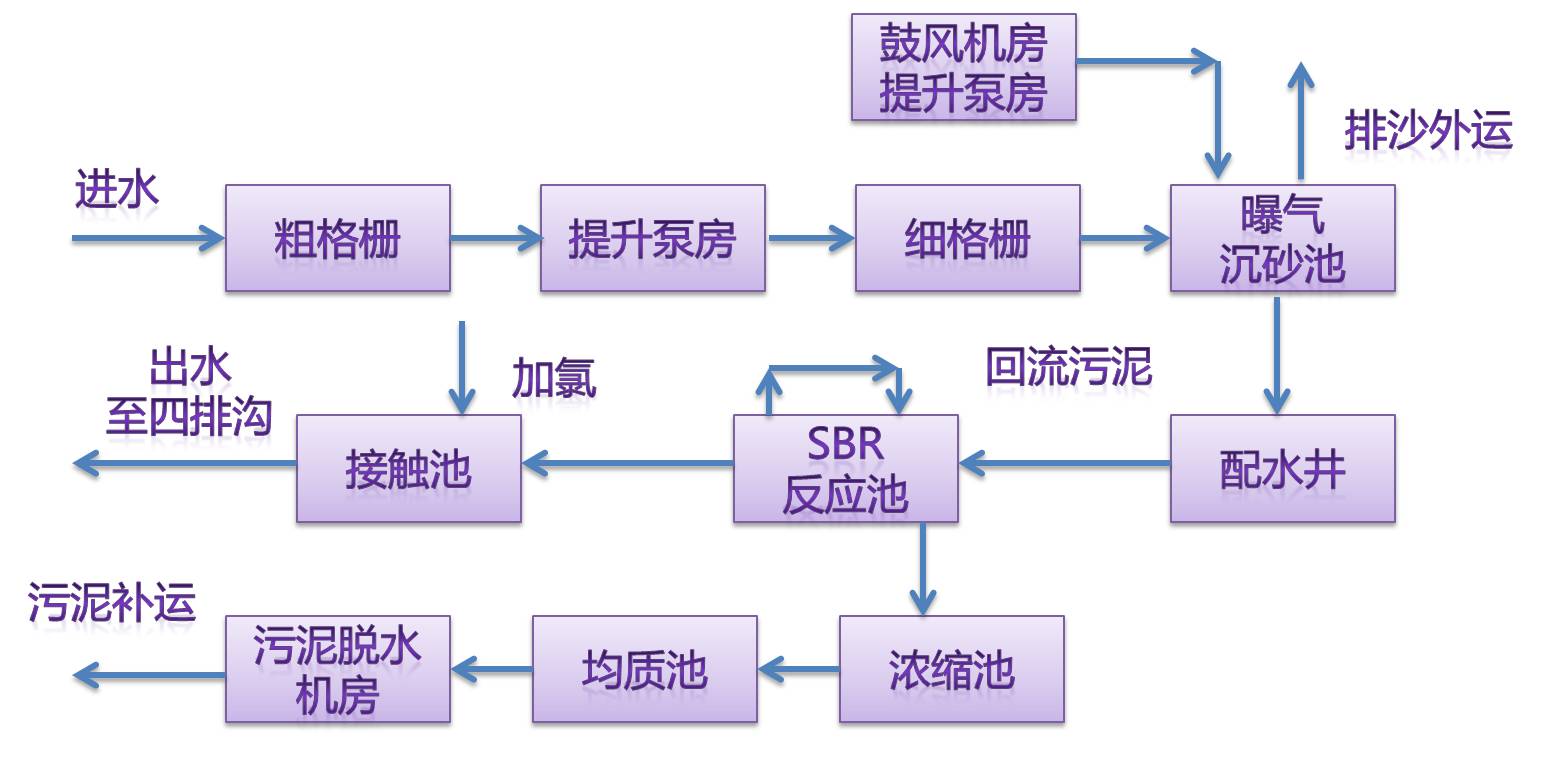 以昌黎污水廠為例,簡要介紹污水處理工藝流程。昌黎縣污水處理廠是被國家列入“三河三湖”、“渤海碧海”水污染治理的重點項目。日處理污水能力達到4萬噸,污水處理后可達到《城鎮(zhèn)污水處理廠污染物排放標準》一級A標準,排放水質(zhì)可直接用于農(nóng)田灌溉。初步污水處理工藝采用MSBR工藝即序批式活性污泥處理工藝;污泥處理工藝推薦采用帶式濃縮、脫水一體機濃縮脫水;消毒工藝采用紫外線消毒。污水經(jīng)處理后作為中水排入附近深化處理塘進行自然凈化,最終全部回用。該項目投入運營后,每年可以減少近千萬噸的污水排放量,不僅大大改善該縣城區(qū)居民的居住環(huán)境,而且對改善該縣及周邊地區(qū)的海域水質(zhì)起到關(guān)鍵性的作用,對縣域經(jīng)濟社會的可持續(xù)發(fā)展具有重要意義。