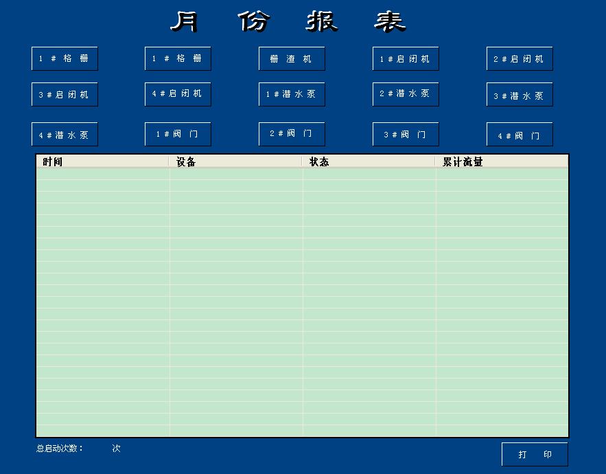 泵站參數的運行分析結果以生成報表的形式送到管理中心供參考。此外,系統還提供預先定義格式的標準報告:有格式報表、無格式報表、診斷報告、報警及事件報告、操作員蹤跡報告、點蹤跡報告、按班/日/月生成生產報表。系統中僅需要輸入報告的目錄信息,以及其它參數如點的名稱或通配符、過濾信息、搜尋時間間隔和目標打印就能完整地對報告組態。系統中不需采用任何編程或編寫來形成報告。