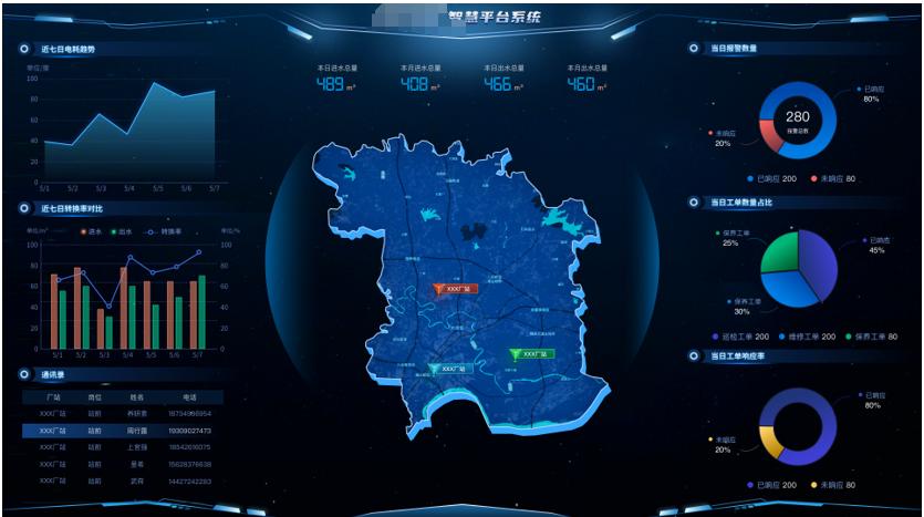 智慧運維系統(tǒng)作為泵站管理的核心,憑借高度集成的前沿技術(shù),對泵站的日常運行實施全方位、多層次的精準(zhǔn)監(jiān)測與科學(xué)管理,其駕駛艙功能能夠依據(jù)個性化需求,在大屏幕上綜合展示泵站的各項關(guān)鍵業(yè)務(wù)數(shù)據(jù),幫助管理者輕松掌握全局情況。