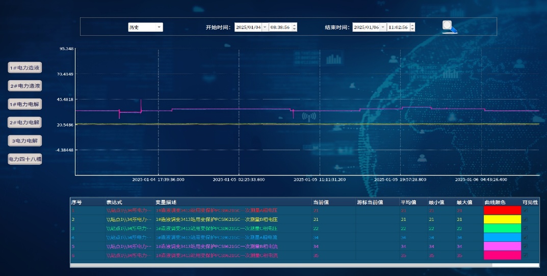 金川集團冶煉廠項目的核心是建設動力廠整流所集控一體化平臺,通過部署基于國產化操作系統下的軟件生態,包括力控跨平臺監控組態軟件ForceSCADA、一體化生產管控平臺FinforWorx、企業級實時歷史數據庫pSpace等,實現對8個整流所、30臺整流機組及配電設備的實時監控,并集成視頻數據與關鍵參數分析功能,支撐生產指令精準下發與異常預警。同時,平臺預留多系統數據通道與設備冗余架構,為冶煉廠生產指揮中心建設和“智慧動力”建設夯實基礎。