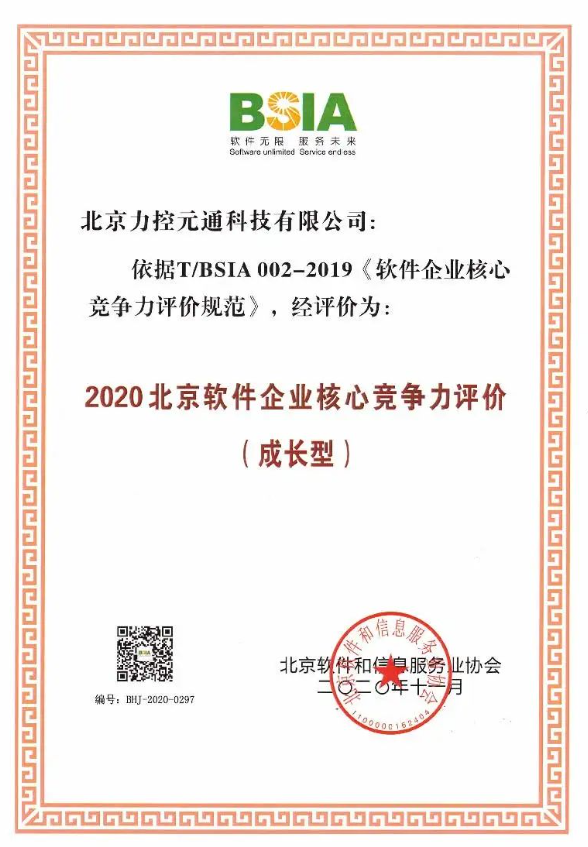 北京力控元通科技有限公司(以下簡稱力控科技)作為我國自動化軟件的領軍企業,憑借持續成長的能力和企業綜合實力,榮膺2020北京軟件企業核心競爭力評價(成長型)企業。