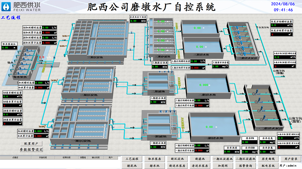 肥西縣磨墩水廠位于肥西縣山南鎮,水源地為磨墩水庫,承擔肥西縣西南部供水任務。為滿足人口日益增長帶來的用水需求,2024年龍河口引水工程投入使用,為磨墩水庫增加外調水源。肥西磨墩水廠的多水源供水格局,需要集成水廠的各個子系統,構建一體化管理平臺,在提高水源保證率的同時優化完善供水系統。