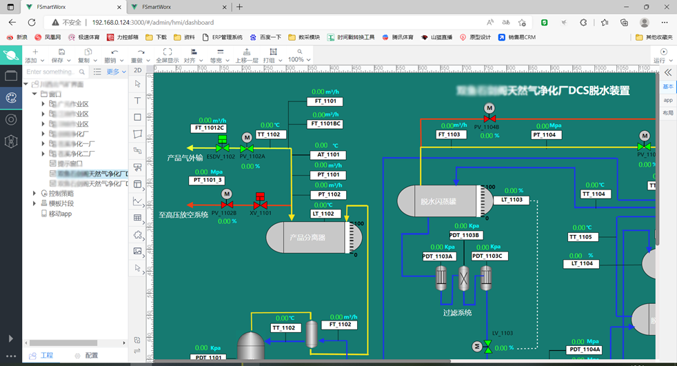 通過力控科技Smartworx平臺的畫面組態工具,用戶可以快捷,方便的開發定制工藝流程圖,相關開關量、設備的運行/停止、模擬量的實時變化等,圖形目標的前景色、背景色及目標的動態移動方向均可任意指定,并可動態變化。可按照不同用戶角色實現放開訪問及修改。
