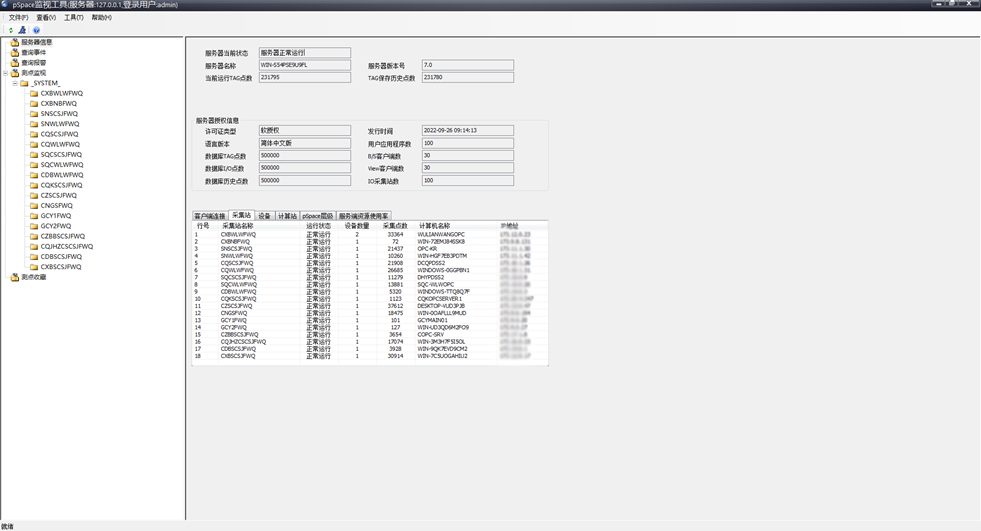 采集服務器由力控IO SERVER構建,主要為系統提供實時數據管理支撐,負責處理、存儲、管理從二級單位推送的實時數據,并將采集解析后的數據推送到pSpace數據庫服務器。