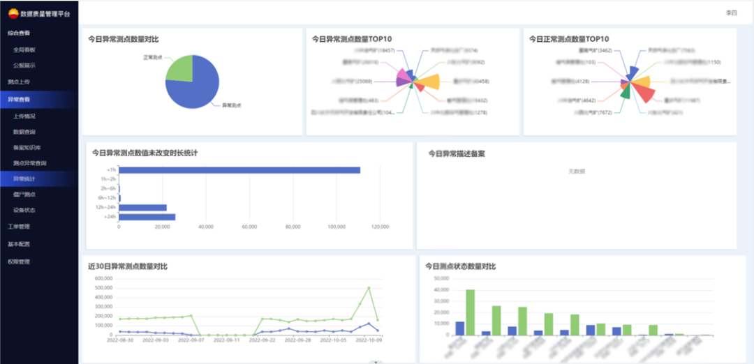 • 提供數據質量分析系統,檢驗數據標簽合規性、統計分析數據質量、異常測點監控、僵尸點管理、場站通信狀態及工單應用等功能。