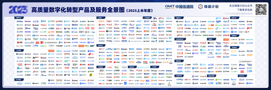 信通院是國家在信息通信領域(ICT)最重要的支撐單位以及工業和信息化部綜合政策領域的主要依托單位,其發布的“鑄基計劃-高質量數字化轉型行動”,旨在推動企業數字化轉型高質量發展,并于會上正式發布了《高質量數字化轉型產品及服務全景圖(2023)》。