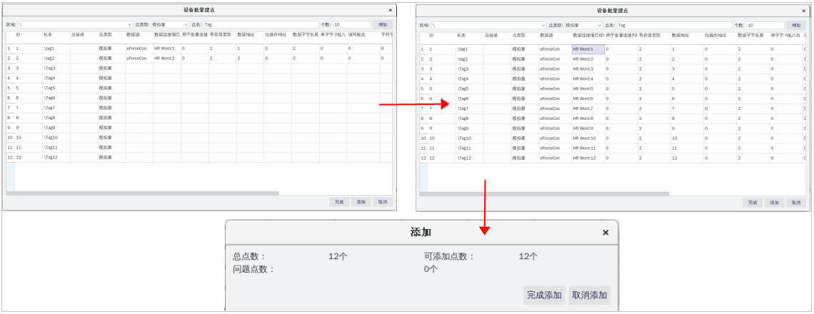 在大型工程項目中,設備點位布局復雜繁瑣。ForceSCADA產(chǎn)品通過批量建點功能,將難題化繁為簡。用戶只需選定設備模板,通過快捷菜單配置點位,再一鍵添加,系統(tǒng)即可自動生成點位。此功能簡化了流程,確保了點位準確一致,提升了工程質(zhì)量和效率。