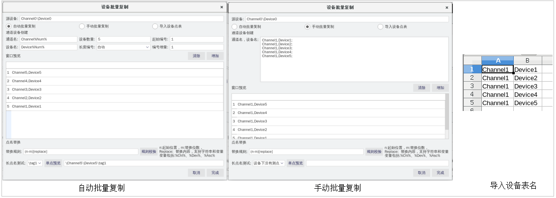 手動復制準確全面:用戶可根據(jù)特殊場景的實際需求,手動輸入通道和設備名稱,逗號分隔,不同設備使用分號分隔。因此用戶能夠靈活全面的掌握復制的內(nèi)容,實現(xiàn)準確的批量復制操作。