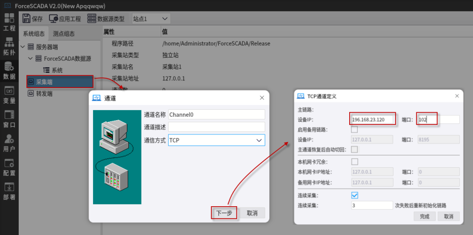 通道-通信方式(TCP)-TCP通道定義(設(shè)備IP,端口102)