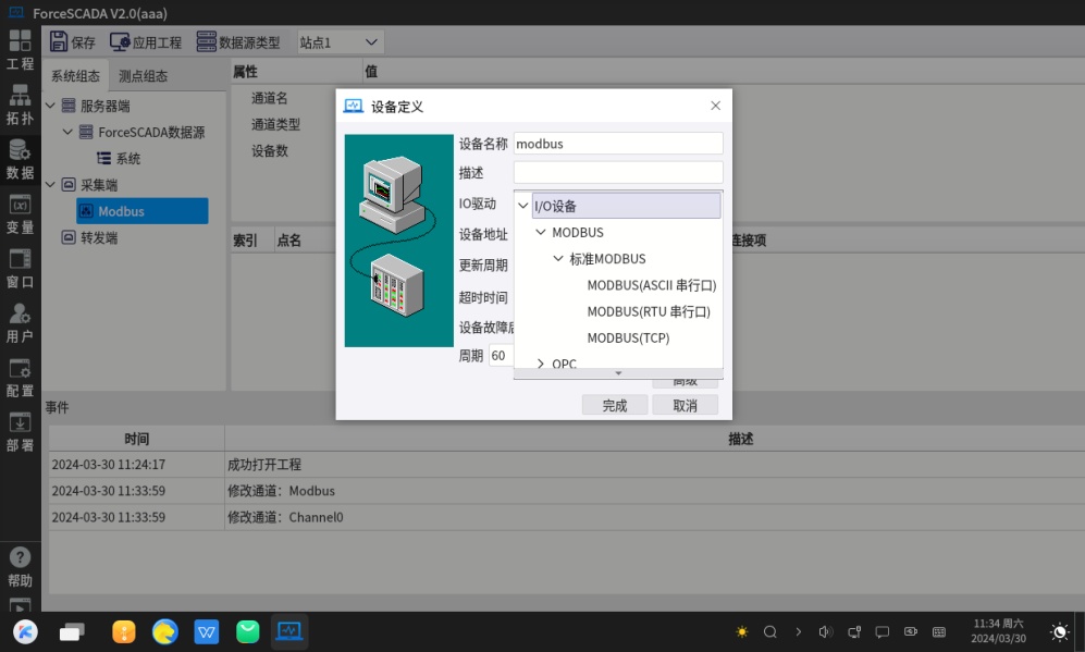 在ForceSCADA中,為用戶提供了Modbus協(xié)議的采集驅(qū)動(dòng),只需要進(jìn)行簡(jiǎn)單的配置就可以完成數(shù)據(jù)的采集,配合ForceSCADA組態(tài)軟件進(jìn)行數(shù)據(jù)的展示以及處理。