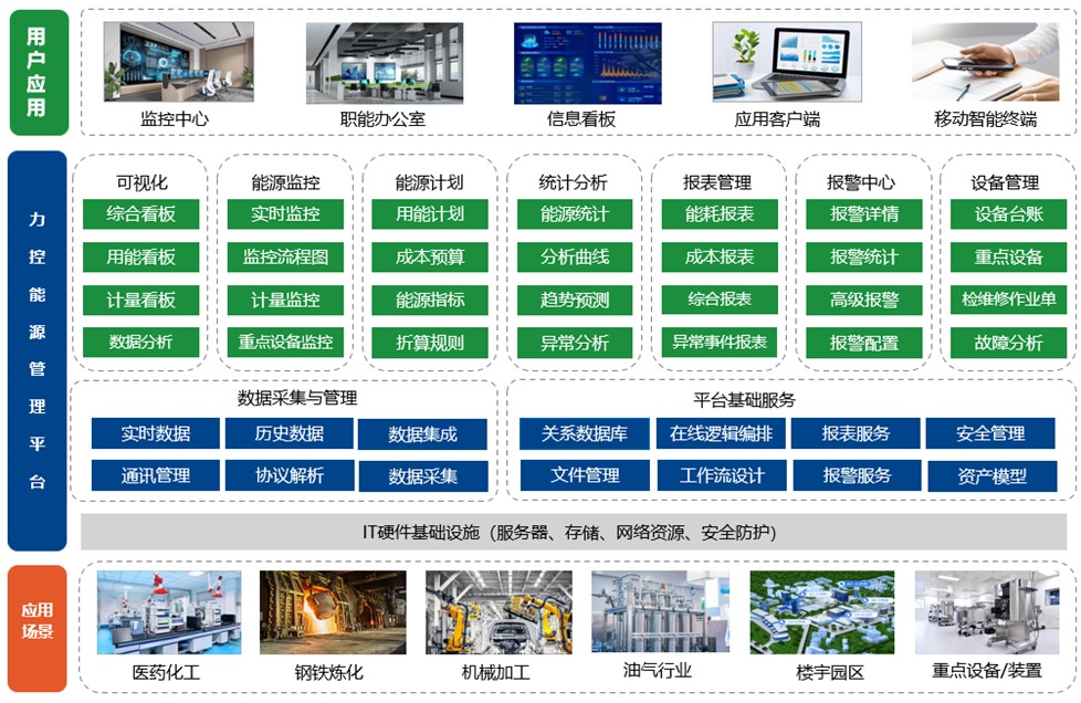 力控能源管理平臺(tái),致力于賦能企業(yè)節(jié)能增效、能源管理轉(zhuǎn)型,通過(guò)結(jié)合工業(yè)大數(shù)據(jù)技術(shù),為建筑、工業(yè)園區(qū)、高耗能企業(yè)提供能源管控一體化解決方案,從能源的采購(gòu)、轉(zhuǎn)化、輸送及消耗等全過(guò)程,實(shí)現(xiàn)實(shí)時(shí)數(shù)據(jù)采集、監(jiān)控、統(tǒng)計(jì)分析,保證供配水、電、氣等資源的集中管理與調(diào)度。