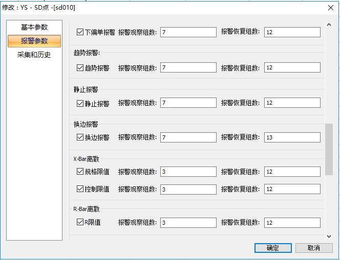 力控SCADA平臺SPC的預警與報警集成了多項功能,包含X-bar與R-bar的限值、偏單、趨勢、靜止等,以及對應觀察與恢復組數的報警觸發機制,可在問題顯現時通過聲光警報及時提醒,自動發送郵件通知相關人員。一旦發現失控,可迅速查明原因并糾正,達到質量與工藝持續改進的目的。