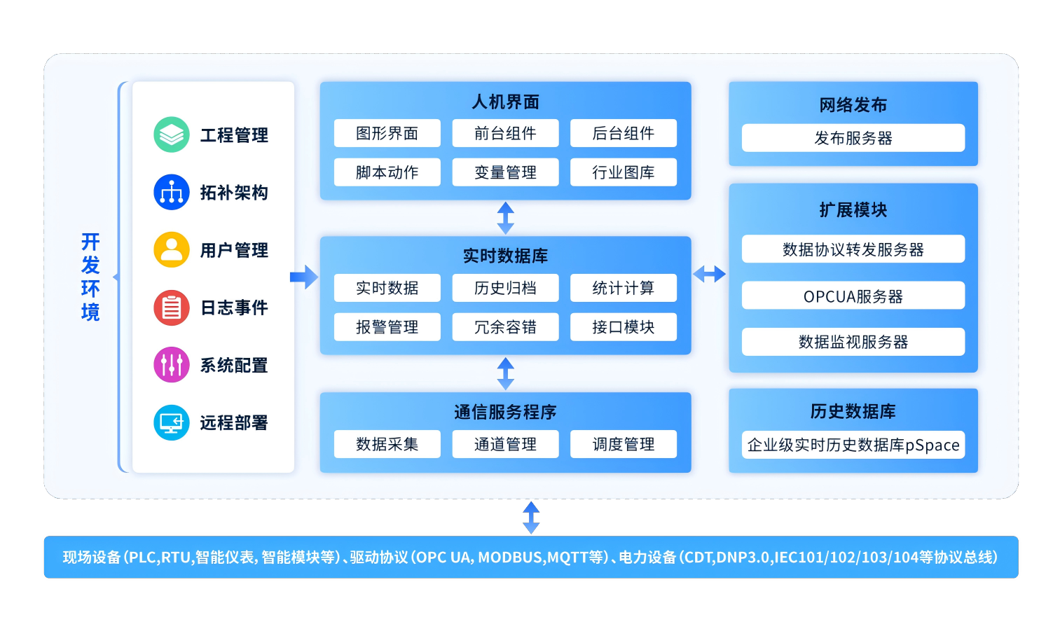 國產(chǎn)化基石:方案以力控ForceSCADA為核心軟件平臺,部署在基于飛騰騰銳CPU的實體機中,構(gòu)建了高可用、跨平臺的分布式數(shù)據(jù)管理平臺。