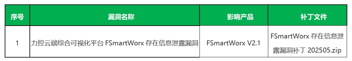 2025年5月28日,國(guó)家信息安全漏洞共享平臺(tái)(CNVD)通報(bào)了我公司產(chǎn)品FSmartWorx的一個(gè)漏洞。現(xiàn)將該漏洞信息公布如下: