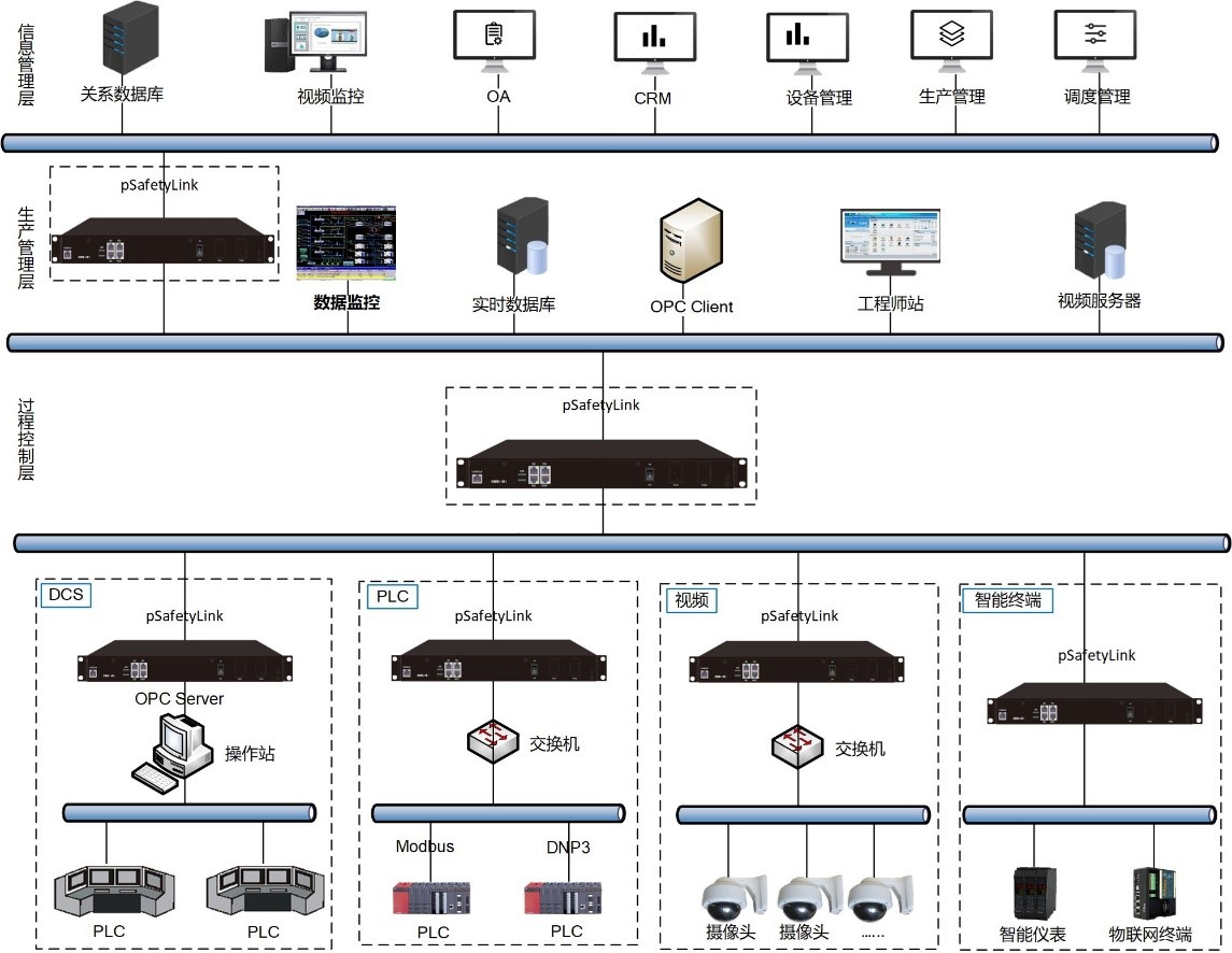 pSafetyLink部署在信息管理層與生產(chǎn)管理層之間,用來阻止來自信息網(wǎng)的DOS/DDOS攻擊、惡意掃描、異常數(shù)據(jù)包等安全威脅;可對通用網(wǎng)絡(luò)協(xié)議進行訪問控制和安全過濾,并且支持對工控主流協(xié)議進行訪問控制及深度解析,可以限制只有可信任的數(shù)據(jù)能夠在工控網(wǎng)絡(luò)中傳輸,有效保護了工控網(wǎng)絡(luò)的安全。