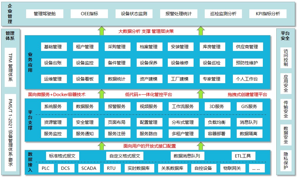 提供設備維修、保養、點巡檢、預警、移動應用APP等功能,實現設備全生命周期管理。