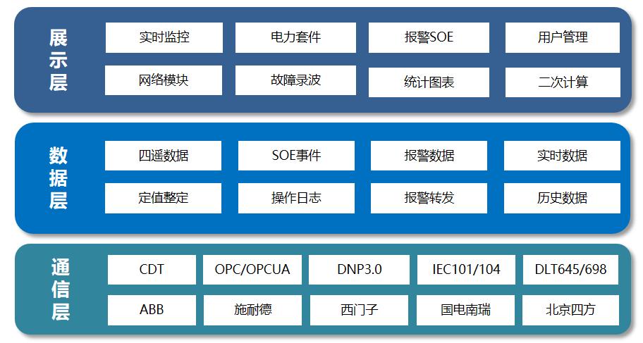 力控電力監控組態軟件FCPower產品通過設備通信層、數據層及展示層構建電力監控系統應用,通信層實現現場電量表、電度表、電壓控制柜等電力設備的數據采集;數據層核心是電力數據處理平臺,支持處理電力四遙數據,以及數據的二次實時統計分析計算;展示層提供專業的電力套件、報警SOE、故障錄波處理、分析曲線及電流棒圖,便于監測線路各相電流的平衡和負荷情況。