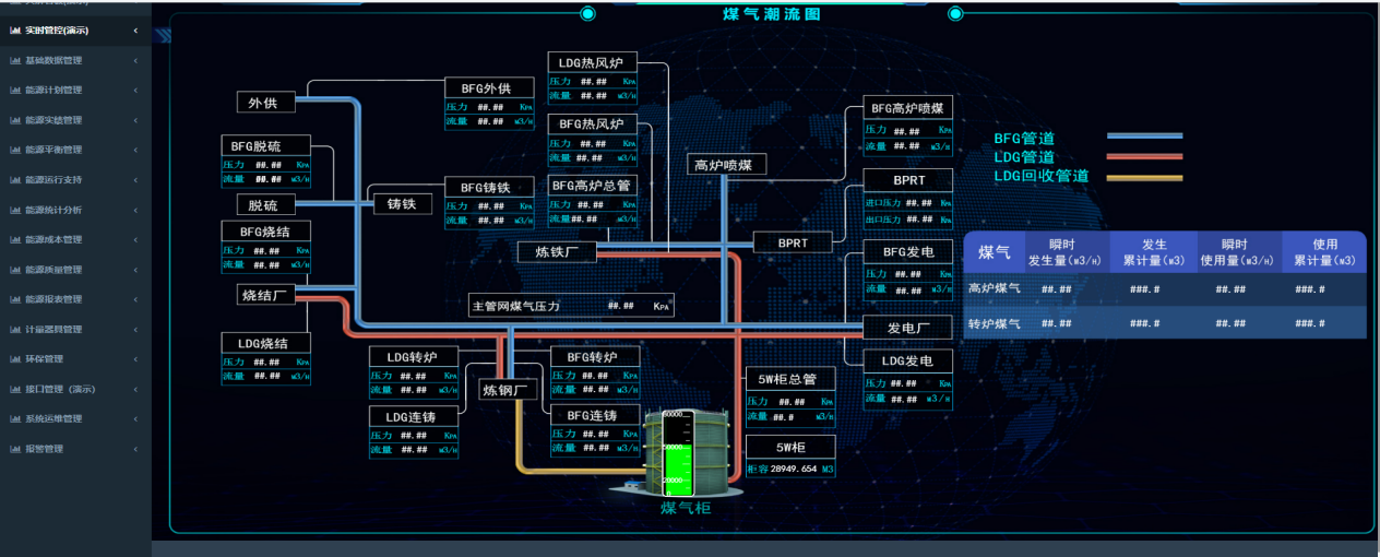 實(shí)現(xiàn)能耗動(dòng)態(tài)分析、能源優(yōu)化控制、能源結(jié)構(gòu)持續(xù)改進(jìn)的全能源鏈管理實(shí)現(xiàn)整個(gè)能源生產(chǎn)、輸送、使用全過(guò)程中工藝參數(shù)、質(zhì)量數(shù)據(jù)、能耗值、環(huán)保數(shù)據(jù)、設(shè)備狀態(tài)等數(shù)據(jù)的實(shí)時(shí)、自動(dòng)采集,對(duì)整個(gè)生產(chǎn)過(guò)程進(jìn)行實(shí)時(shí)監(jiān)控及智能報(bào)警,對(duì)動(dòng)力系統(tǒng)的異常和故障借助于綜合監(jiān)控系統(tǒng)的信息進(jìn)行快速判斷和處置。