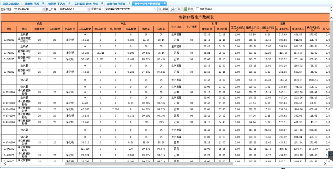 依據(jù)對(duì)各產(chǎn)線產(chǎn)品的生產(chǎn)批次數(shù)據(jù)的完整記錄,生成產(chǎn)品批次生產(chǎn)數(shù)據(jù)報(bào)表,通過(guò)該報(bào)表可以查看每一生產(chǎn)批次的產(chǎn)量、能耗、相關(guān)生產(chǎn)工藝參數(shù)等完整信息,以此為依據(jù)實(shí)現(xiàn)批次能耗追蹤和用能分析。
