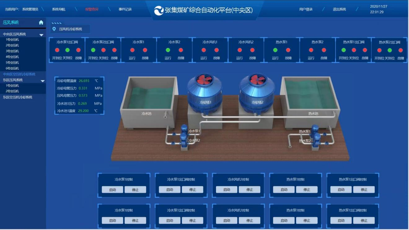 系統可以實時、準確地采集各子系統現場設備的運行狀態、工藝參數等,并以組態畫面和組態圖表的形式表現出來。具備遠程控制功能,對生產過程中發出的控制指令,下達到各子系統或控制系統,實現數據的采集、控制、過濾、計算等。