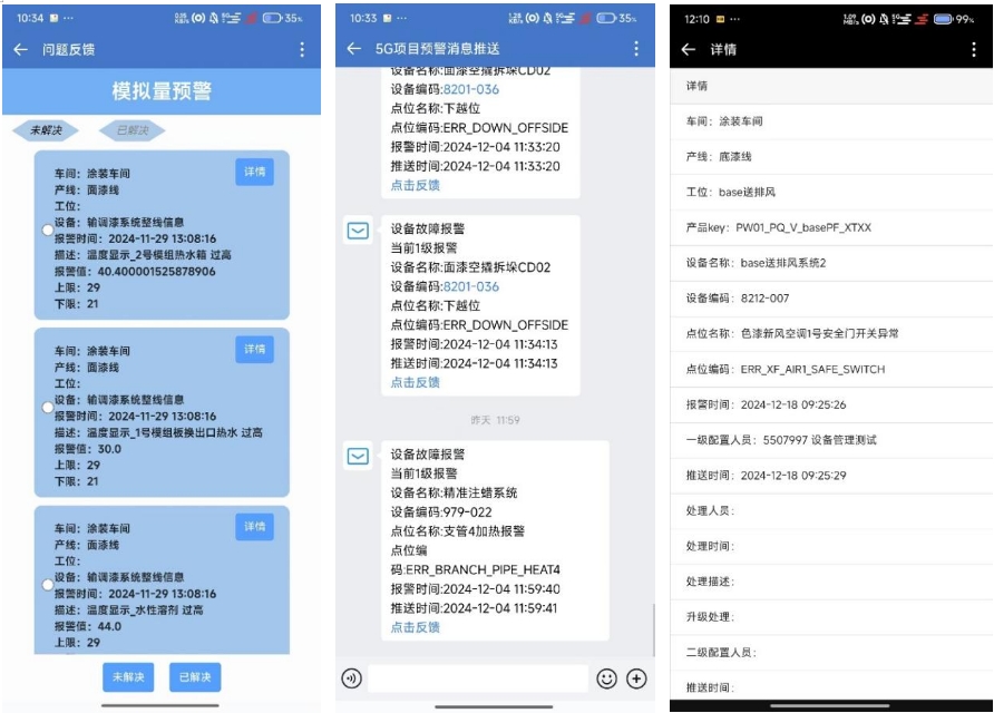 當在制品涉及的設備、物料以及外圍系統出現異常時,系統自動發布任務到相應工作人員,及時告知異常詳情并通知處理,優化生產調度、提高生產效率。